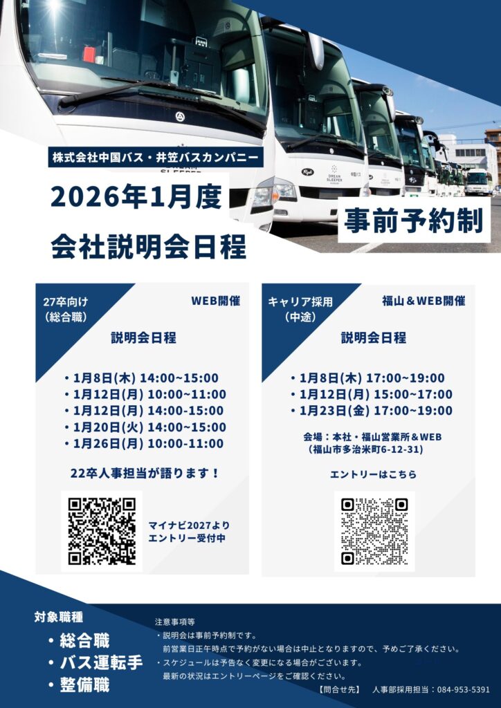 2026年1月度 会社説明会開催のお知らせ - 株式会社 井笠バスカンパニー